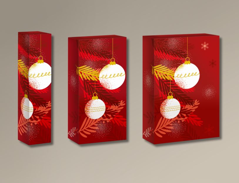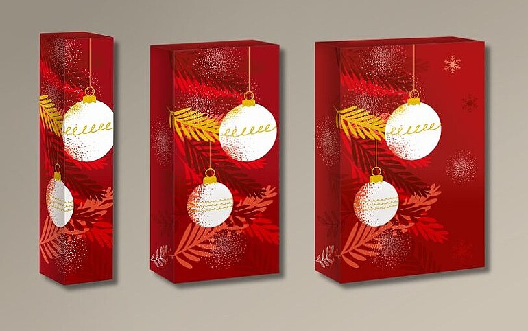 For example, the wine gift cartons from the new ‘Beerenzweig’ range (available in 1, 2 or 3-bottle versions), feature a classic, understated berry design that is perfect for a fine organic wine or a non-alcoholic bottle for the festive season, or indeed any other occasion. Karl Knauer’s second new Christmas design is a modern yet classic blend of different shades of red with stylised fir branches and Christmas baubles. Wines with a more sophisticated character look great in these boxes.
