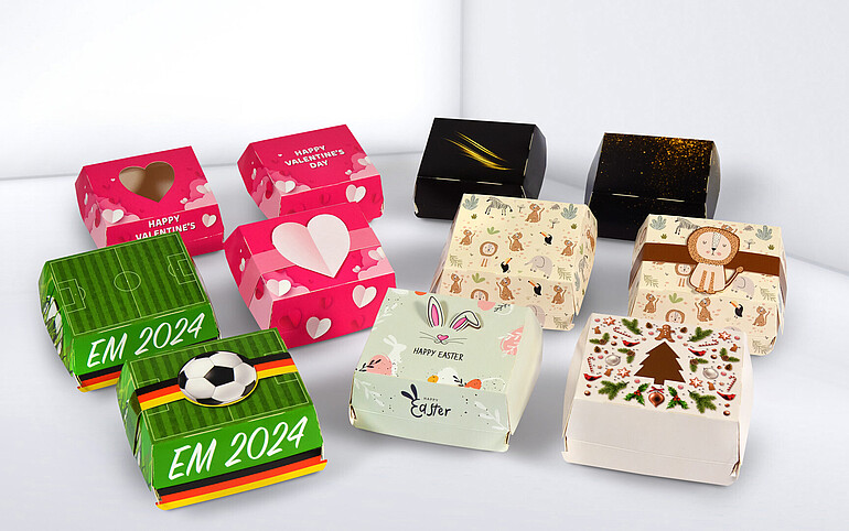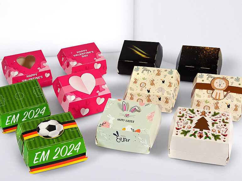 The same is true of the gift boxes from packaging specialist Karl Knauer, based in the Black Forest, Germany. Here, it’s not the shoes, but the options for refined finishing touches that make sure you’re noticed. Whether it’s for a special occasion, such as a product launch or anniversary celebration, or as standard packaging for every season – virtually anything is possible and thanks to the packaging experts at Karl Knauer, it can even be realised in small quantities at attractive terms. We are not only able to print the folding boxes to a completely unique design, we can also incorporate hole punching and/or sleeves. Rabbit ears sticking up from the box lid, for example, could suggest Easter, or punched-out Christmas trees could allow a peek at the surprise inside. With regard to content: since the box is made of GC2 virgin fibre cardboard, it is also suitable as packaging for food. But this creative packaging is naturally also ideal for other small items, such as toys, giveaways and accessories.